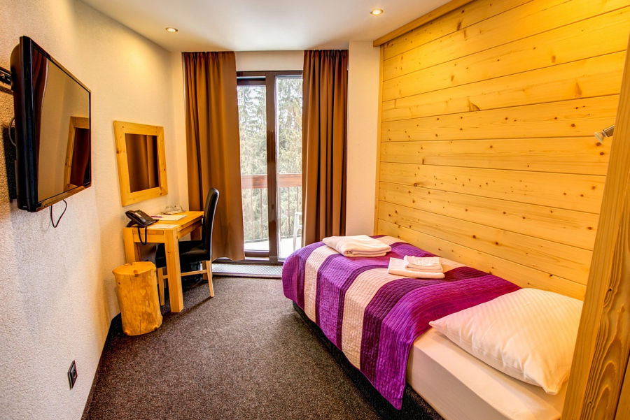 Jednolôžková izba Superior má francúzske okná a balkón, z ktorého ponúka výhľad na tatranskú prírodu. Izba je vybavená samostatnou kúpeľňou so sprchovacím kútom a s toaletou. V tejto izbe sa nachádza posteľ, ktorá je po rozložení vhodná pre 2 osoby.